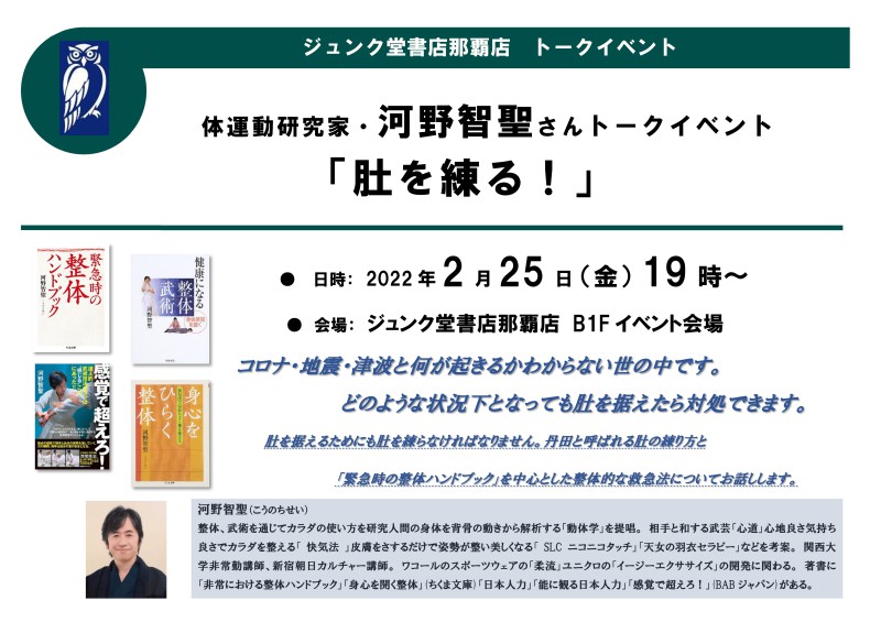 体運動研究家・河野智聖さんトークイベント「肚を練る!」