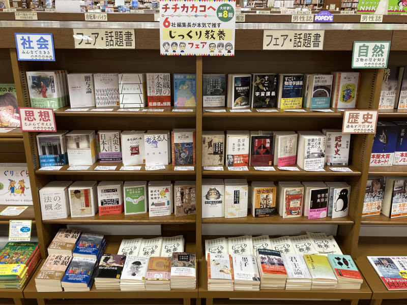チチカカコへ。ちくま学芸文庫、中公文庫、角川ソフィア文庫、河出文庫、講談社学術文庫、平凡社ライブラリー。これで「チチカカコへ」というわけです。所謂「教養文庫シリーズ」をもつ六つの出版社さんが共同で始めた教養フェアです。今回で第八回目となります。主だったタイトルを見てみますと、『悪について』(ちくま学芸文庫)、『組織の不条理』(中公文庫)、『天災と日本人』(角川ソフィア文庫)、『服従の心理』(河出文庫)、『レイシズム』(講談社学術文庫)、『墨子よみがえる』(平凡社ライブラリー)などなど。なんとなく、今という時代の空気に則したラインナップに思え、各社じっくりと考えられているな、と棚の前で考えさせられます。レジカウンター前のフェア棚にて展開中です。じっくりと選び、じっくりと読むという営みに立ち返りましょう。