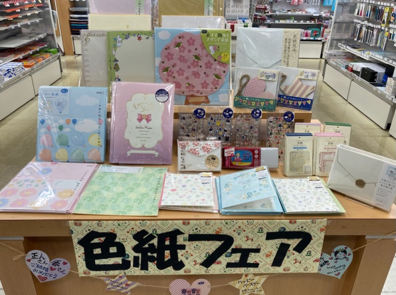 もうすぐ出会いと別れの季節がやってきますね。お世話になった人やエールを送りたい人などなど想いを伝えるのにぴったりな色紙を集めた色紙フェアを開催中です。スタンダードなものから華やかで可愛いもの、ユニークなデザインのものなどたくさんの色紙を取り揃えております。シールや飾りでデコレーションをして世界に一つだけの素敵な贈り物を作ってみてはいかがでしょうか。1F文房具売場にて開催中です。