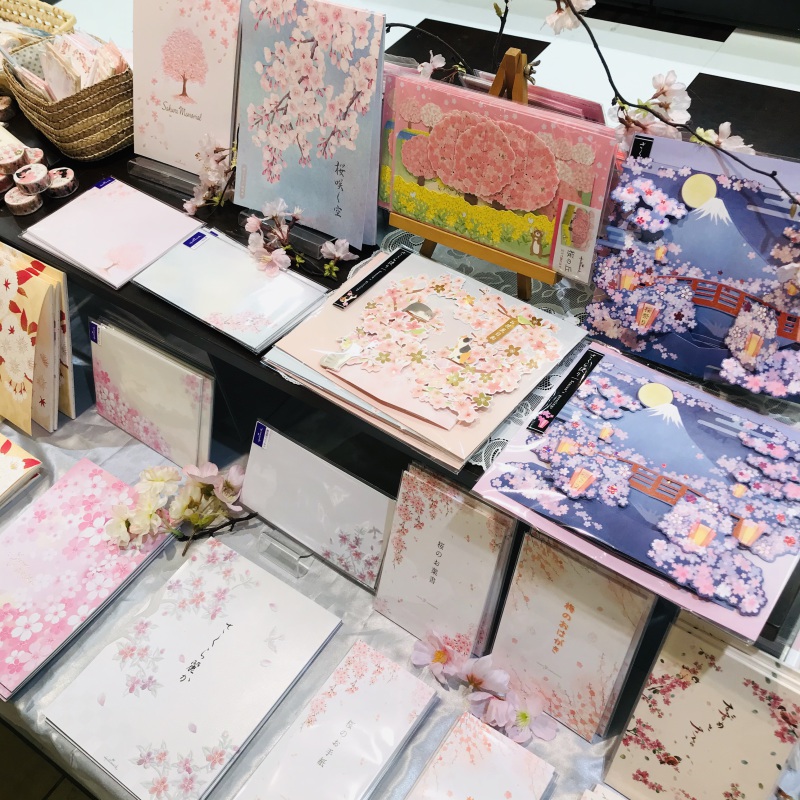 まだまだ寒い日がつづきますが、2月4日立春から暦の上では春ですね。入口フェア台には春らしい桜や、苺のレターやカードを展開中です。気持ちが明るくなるような、はなやかなデザインの便箋で、大切なかたへお手紙を送りませんか?季節品につきなくなりしだい終了です。