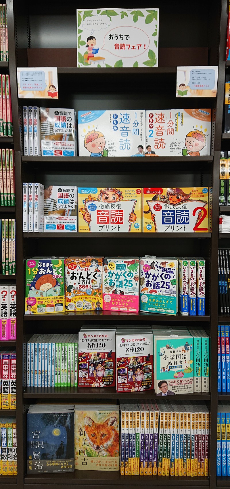 なかなかお外ではお喋りできないので…。そんな今だから「おうちで音読」。「1日10分!『音読』で国語の成績は必ず上がる!」(あさ出版)、「国語の力がグングン伸びる 1分間速音読ドリル」(致知出版社)など、当店のベストセラーをご紹介します。