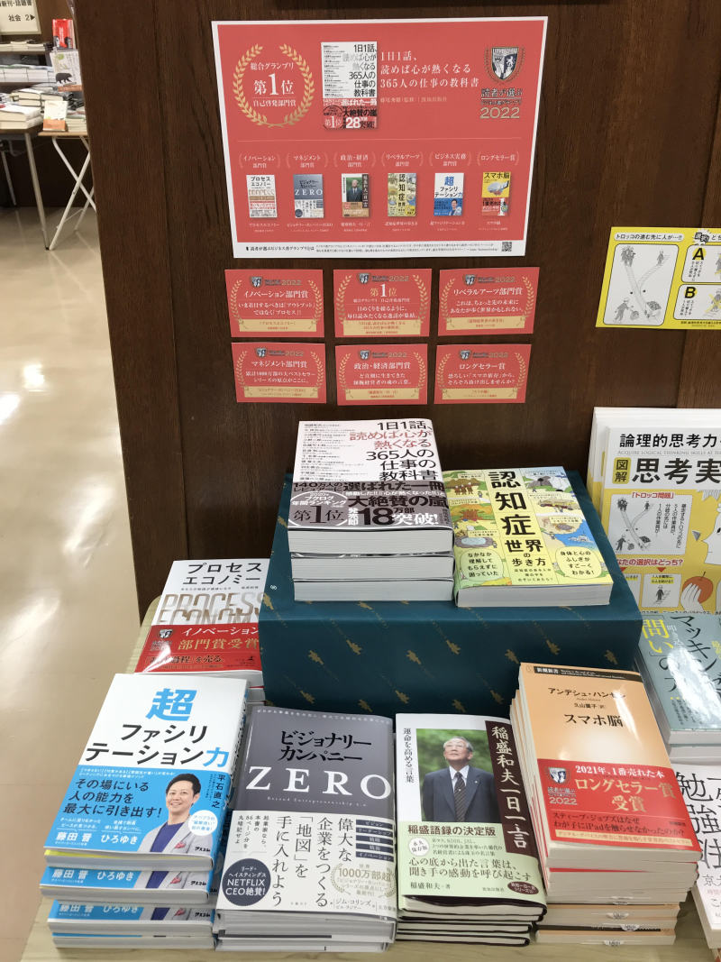 2020年12月~2021年11月に刊行されたビジネス書から、読者投票によって栄えある第1位に輝いたのは、『1日1話、読めば心が熱くなる365人の仕事の教科書』(致知出版社)でした。おめでとうございます!各部門受賞作と共に、ただ今ビジネス書の棚の平台にて展開中です。イノベーション部門賞『プロセスエコノミー』や、リベラルアーツ部門賞『認知症世界の歩き方』など、どれも発売直後から話題になった書籍ばかり。どうぞお見逃しなく。