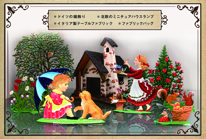 ミニチュアハウスと錫かざりが織り成すメルヘンの世界をお楽しみ下さい。