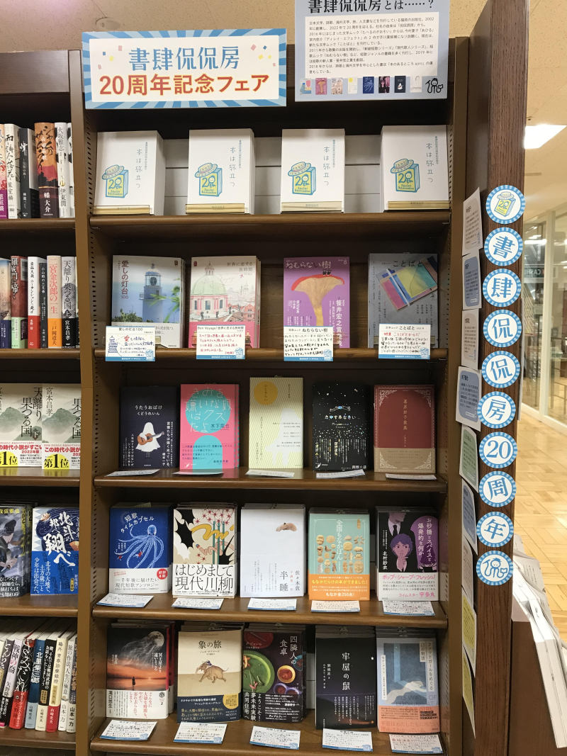 日本文学、詩歌、海外文学、旅、人文書などを刊行している福岡の出版社 書肆侃侃房(しょしかんかんぼう)。2002年に創業し、2022年で20周年を迎えました。社名の由来は「侃侃諤諤」から。文学作品からはじまり、2011年からは歌集の出版も開始。短歌の新人賞・笹井宏之賞の創設、書店「本のあるところ ajiro」の運営もしています。文芸書棚にて書肆侃侃房 20 周年記念フェア開催中です。記念冊子「本は旅立つ」を配布しております。ぜひお立ち寄りください。