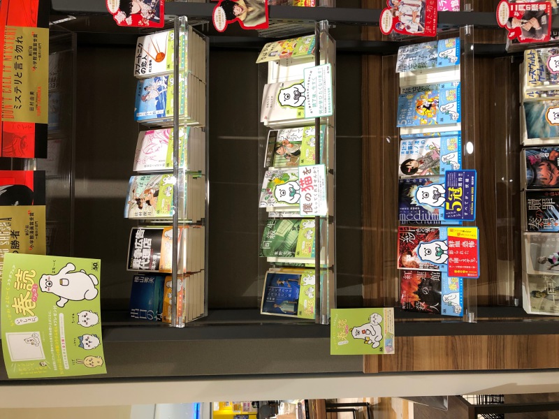 ちいさくてかわいい大人気コミック『ちいかわ』と講談社文庫のオリジナルキャラクター「よむーく」がコラボ。文庫本の帯にちいかわとよむーくが登場します。フェアの内容はミステリーや友情モノ、時代小説など多くのお客様の手に取っていただける内容になっています。対象の文庫本をご購入いただくと1冊につき1つ「特性コラボふせん」をプレゼント。春のフェアにぴったりなこの企画、ぜひ店頭でご覧くださいませ。