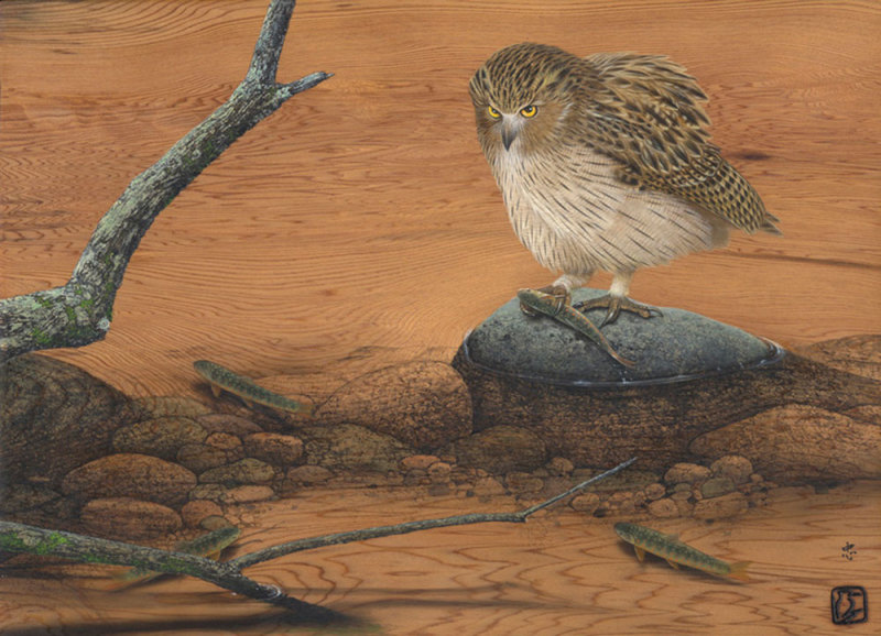 建築材や家具などに使用するには不向きな木、そんな木でも独特の「座」が刻まれているものがあります。長い年月を様々な自然環境に耐えたことにより刻まれたその痕跡は、変化に富み人間には創造することのできない景色として現れます。そんな素材の景色を活かしつつ、 新たに自然と共に生きる動植物をじかに描くことにより、独自の空間を再構築した絵画です。木を彩る、で「木彩」(もくさい)としました。 1980年グラフィックアートに携わると共に、身近な自然と共生する生き物たちをモチーフにオリジナル絵画の制作を始める 1999年「木彩アートの制作を始める 2006年フリーで活動 (アート工房)