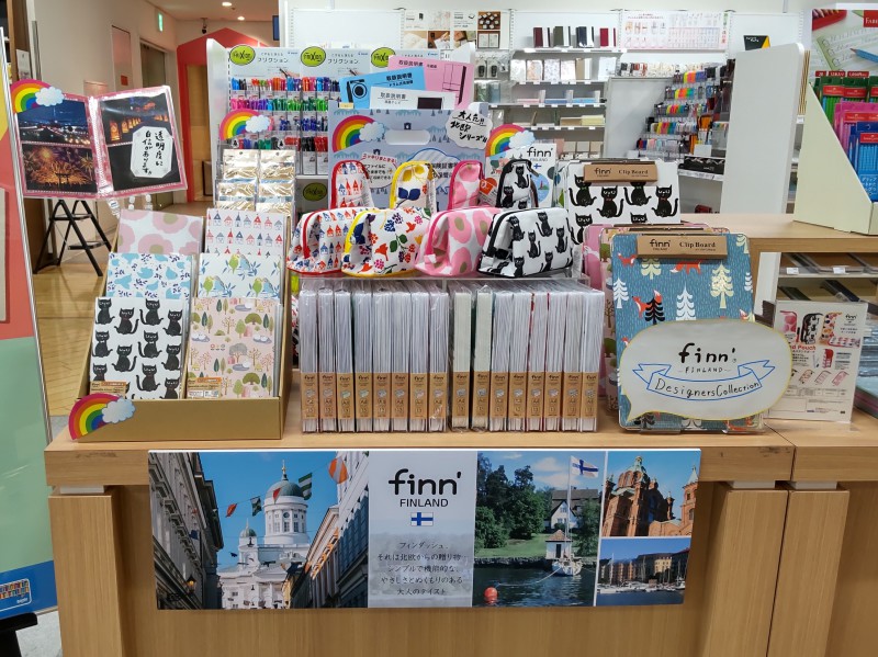 北欧発のステーショナリーシリーズのfinn´(フィンダッシュ)シリーズフェアを文具売場にて開催しております。色鮮やかなイラストが目を引きますが、2WAYの使い方ができる大容量ポーチや、収納する書類のボリュームによってポケットが伸び縮みする収納スタンドなど、機能性も兼ね備えています。ぜひ店頭にてご覧くださいませ。