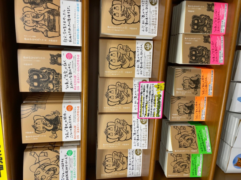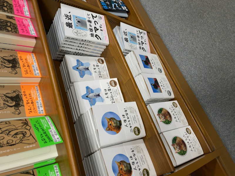水野敬也さんの最新刊、『夢をかなえるゾウ0 ガネーシャと夢を食べるバク』が発売されました。累計460万部の大ベストセラーシリーズ、その5冊目は原点回帰の”夢ゾウ~「0」”。最新刊はもちろんの大展開ですが1巻目~4巻目もしっかりとご用意いたしました。”夢ゾウ~”をまだ読んでいない皆さん、是非この機会に手にとってみて下さい。3巻目までは文庫版もございます。ついでと言ってはなんですが水野敬也さん・長沼直樹さん共著でこちらもベストセラーの”人生は~”シリーズも展開しております。かわいい写真とメッセージのコラボにきっと癒やされます。エレベーターを降りた正面の話題書・フェアコーナーにて。是非ご来店くださいませ。