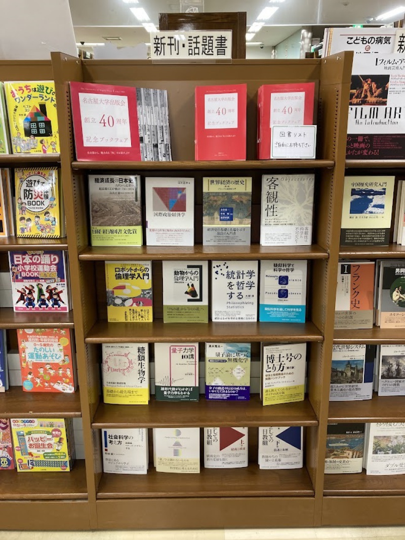 2022年6月4日をもって創立40周年を迎える名古屋大学出版会の書籍を集めた「名古屋大学出版会創立40周年記念ブックフェア」を地下1階にて開催しております。棚二本を使って大きく展開中です!創立40周年記念増刷や新装復刊シリーズ「リ・アーカイヴ叢書」について紹介している特別記念リーフレットも無料で配布しております。ぜひご覧ください。赤と白のパネルが目印です。どうぞお立ち寄りくださいませ!