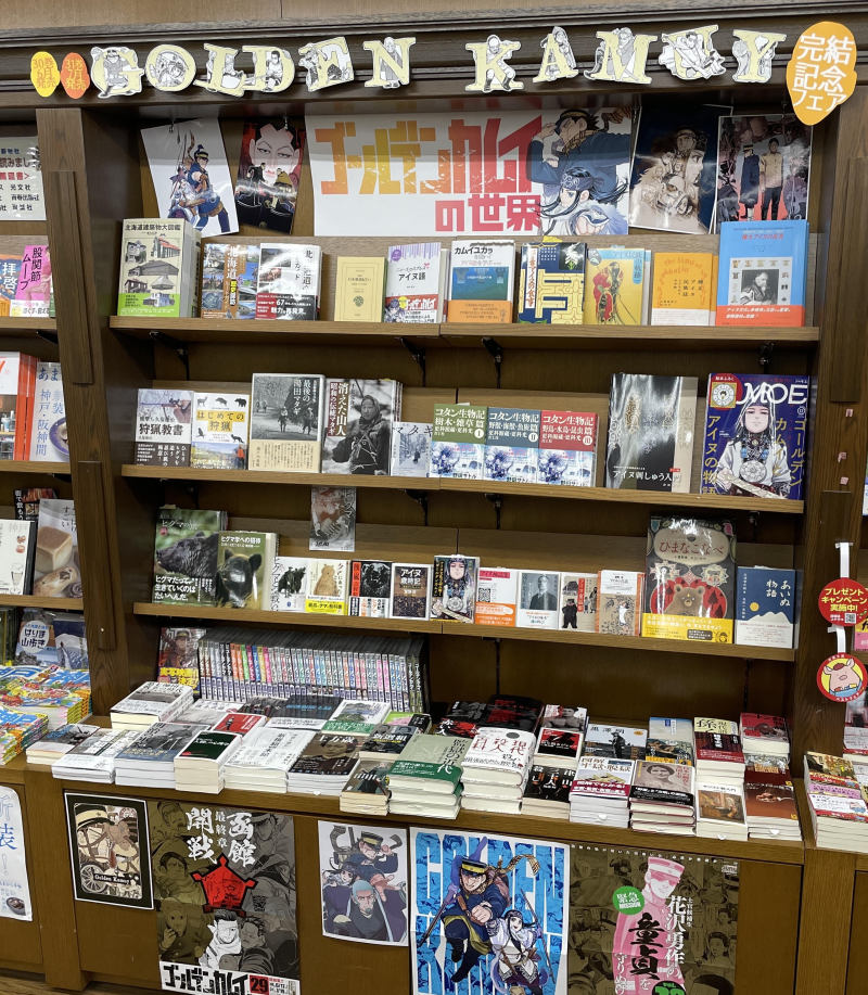 2022年4月に週刊ヤングジャンプの連載が完結した『ゴールデンカムイ』。「和風闇鍋ウエスタン」のキャッチフレーズどおりの多彩な要素をより深く理解し味わえる本を集めました。原作者、野田サトル先生が執筆に際し参考にした資料も展示しております。6月、7月の単行本の連続刊行にむけてますます盛り上げていきます!