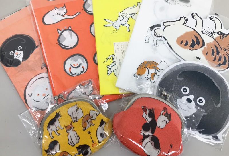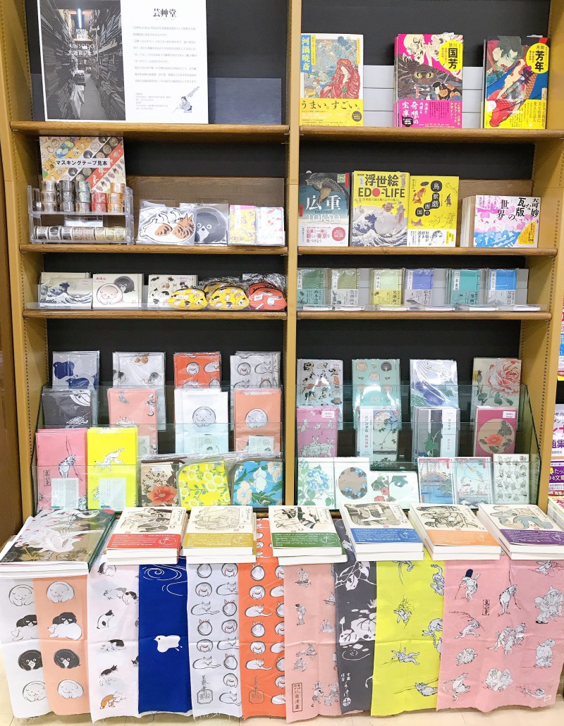 オススメの浮世絵書籍はもちろん、和綴じ製本で手のひらサイズの可愛らしい豆本シリーズ、美しい日本画の花々を描いたクリアファイルや絵葉書、浮世絵の猫や子犬の手ぬぐいやがま口、御朱印帳などもございます。エスカレーター上がってすぐフェアコーナーにて販売中ですのでぜひお立ち寄り下さい。