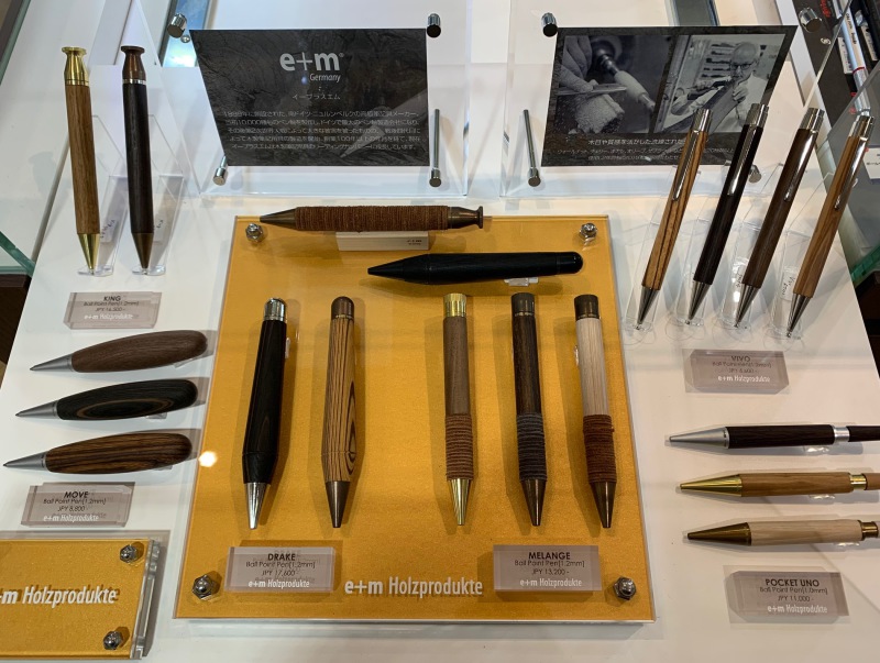 ドイツの高級木軸筆記具メーカー「e+m」を一ヶ月間特設コーナーにて展示販売中です。
