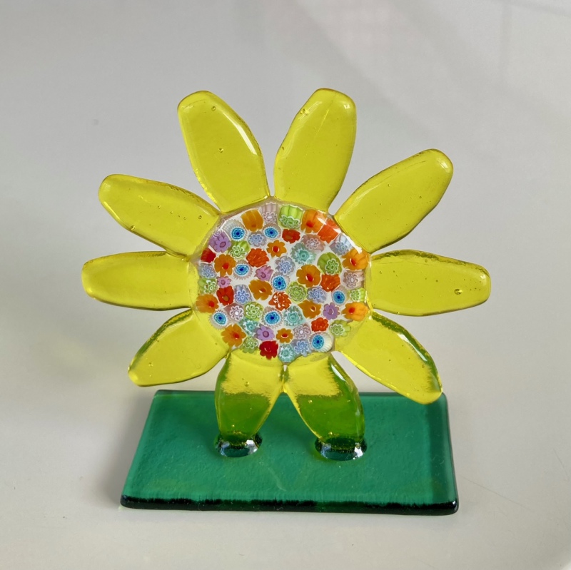 〈パウダーシュガー〉いろいろな技法を用いた、色鮮やかでバラエティー豊かなガラスクラフトです。季節を彩る様々なガラス作品をご紹介いたします。写真の商品は、ベネチアンガラスのミルフィオリをとかし込んだ色鮮やかなひまわりの置物は、お部屋を元気にしてくれる作品となっております。