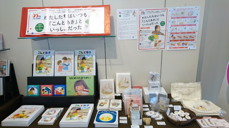 EHONS×福音館書店 『こんとあき』33周年フェア1階上りエスカレーター前にて展開しています!対象書籍またはグッズお買い上げのお客様へ先着にてノベルティのカード配布しております。ぜひお立ち寄りくださいませ