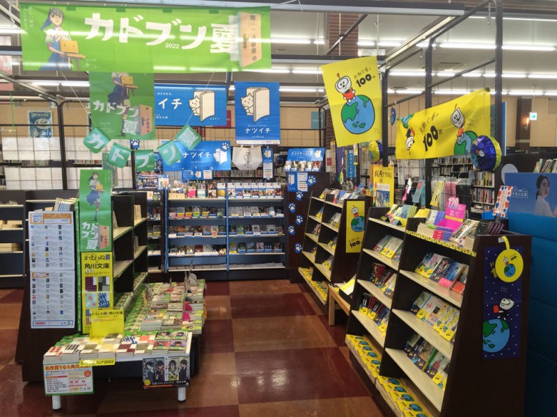 夏の定番、KADOKAWA、集英社、新潮社の文庫100冊フェアを今年も盛大に開催中!どれもこの夏に読んでおきたい名作ばかりです。無料小冊子も配布中。各社のフェア購入特典もゲットしちゃいましょう。また、先月より開始の「丸善ジュンク堂書店スタッフが選ぶ夏の文庫50冊 2022」も場所を変更して隣で展開中、こちらもよろしく。店舗中央催事コーナーにて。
