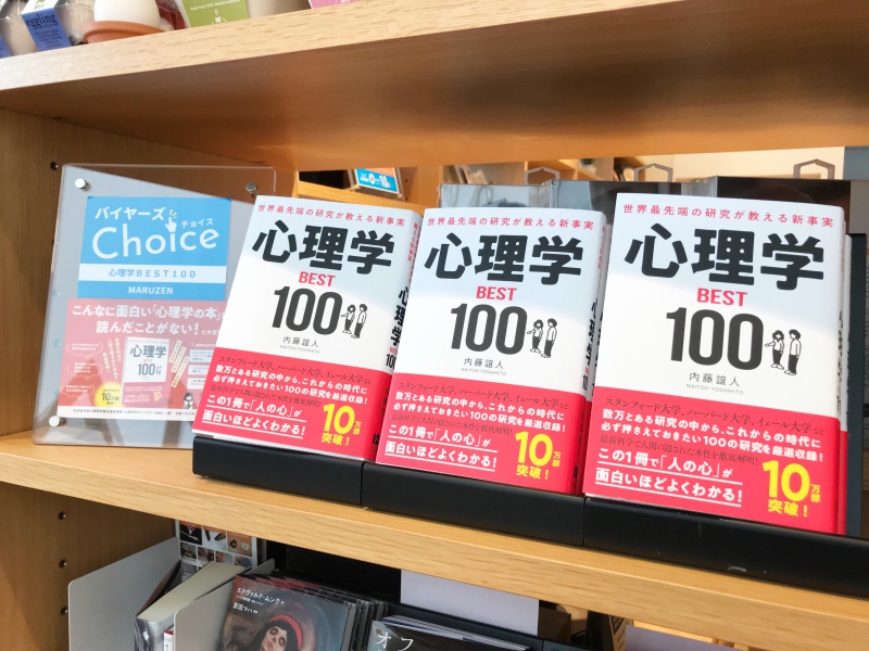 数ある心理学研究の中からセレクトされた、「BEST100」が紹介されています。心理学というと一見難しそうな印象ですが、本書では、日常生活でも役立ちそうなものが載っており、気軽に読め、なおかつ知識を身に付けることのできる1冊となっております。ビジネス棚とライブラリーにて展開中ですので、ぜひお手に取ってご覧ください。