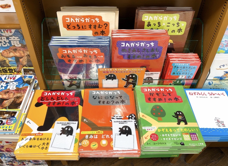 こんがらがっちの指でたどる絵本第7弾「コんガらガっちかぞえてすすめ!の本」と、トライ&エラーしながら自然と学べる、コんガらガっちの「やってみそ!」シリーズ第1弾「コんガらガっちきみのあたまの中、ズバリあててやる!の本」の発売を記念して、フェア台で展開中の「コんガらガっち」シリーズに、「特製マグネット」を封入しています!この機会にぜひお買い求めください♪