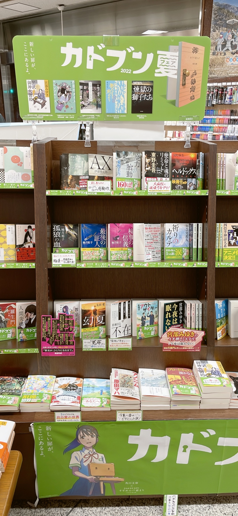 毎年恒例、夏の風物詩となった、KADOKAWA「カドブン夏フェア2022」フェアが始まりました!古典となった作品から話題の新刊まで、出版社さんイチオシの文庫が勢ぞろい!配布中の小冊子には、新海監督自ら執筆した『小説 すずめの戸締まり』の一部も特別に収録されています。さらに対象作品を購入すると、抽選で豪華賞品が合計500名様に当たるプレゼントキャンペーンに応募できます。入口話題書フェア棚にて展開中です。