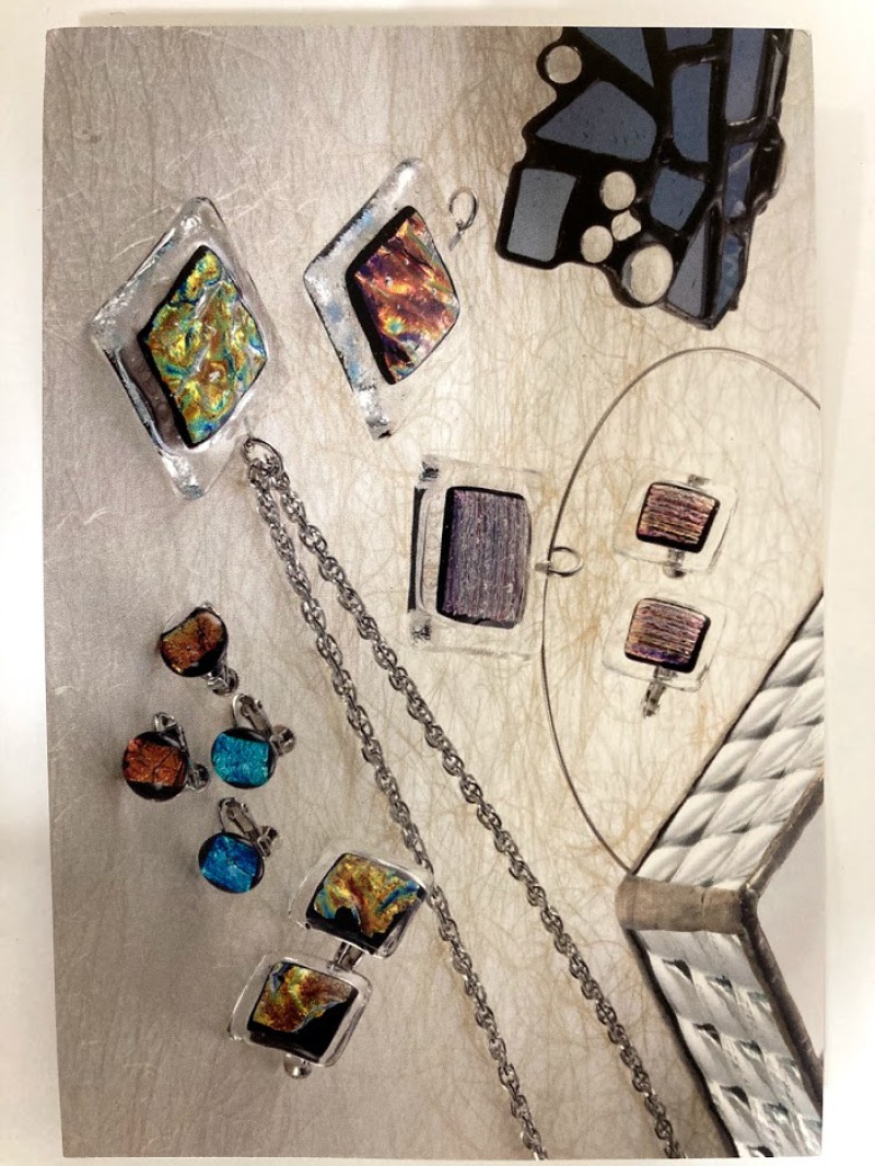 ガラス同士を炉の中で焼き、溶かし合わせて作る〈 フュージング 〉という技法です。吹きガラスともバーナーワークとも違う、新しいジャンルのウォームガラスのジュエリーです。ガラス中に銀箔を入れたり、ガラス同士を重ねたり一つ一つ丁寧に手作りした一点物のジュエリーを、どうぞお楽しみ下さいませ。