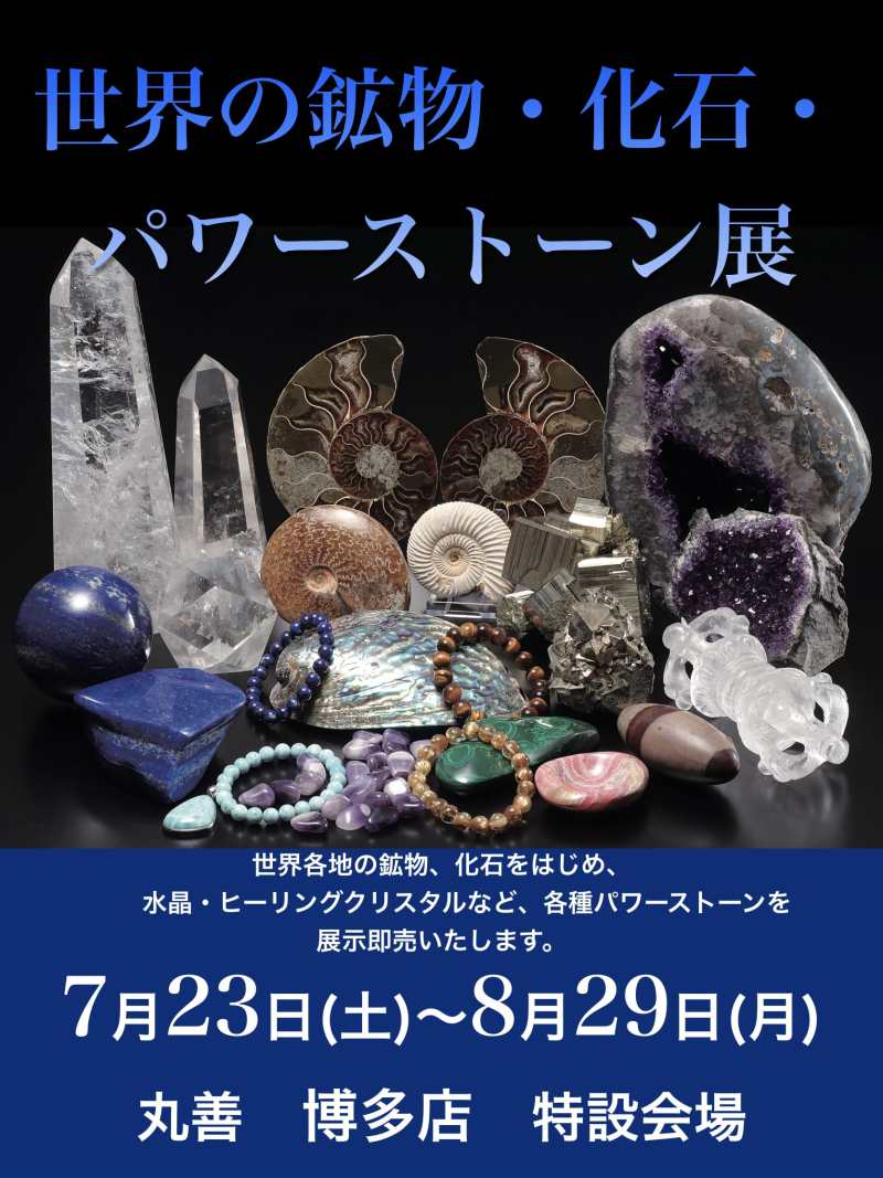世界各地の鉱物、化石をはじめ、水晶、ヒーリングクリスタル等各種パワーストーンを展示即売いたしております!今回のおすすめはサクラメノウ。桜の花びらが閉じ込められたような美しさです。サメの歯化石、隕石、岩石標本など自由研究にぴったりなお品もございます。ひとつひとつに個性的な特質、特性、輝き、意味が含まれる魅惑のパワーストーンを是非一度ご覧ください。最終日は18時閉場