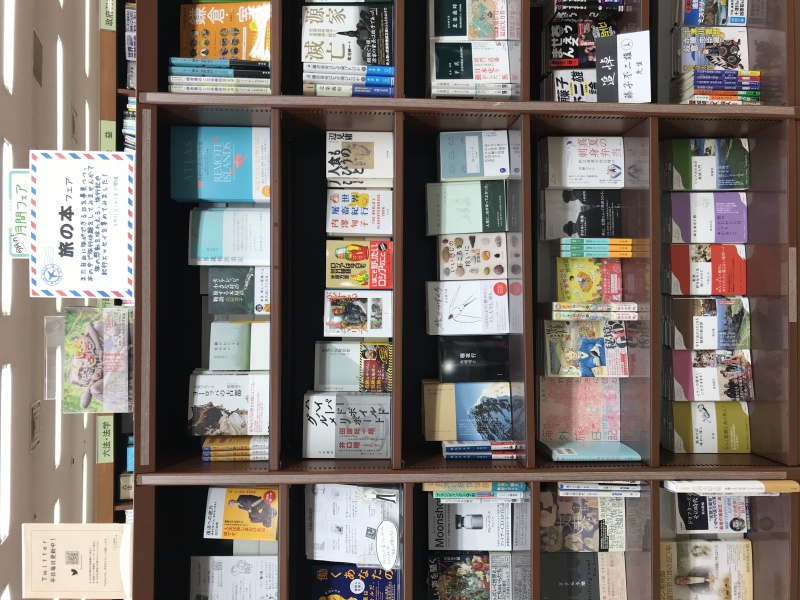 月間フェアは、レジ側の入り口を入ってすぐの棚、列「新刊・話題書」の中ほどにて展開中です。