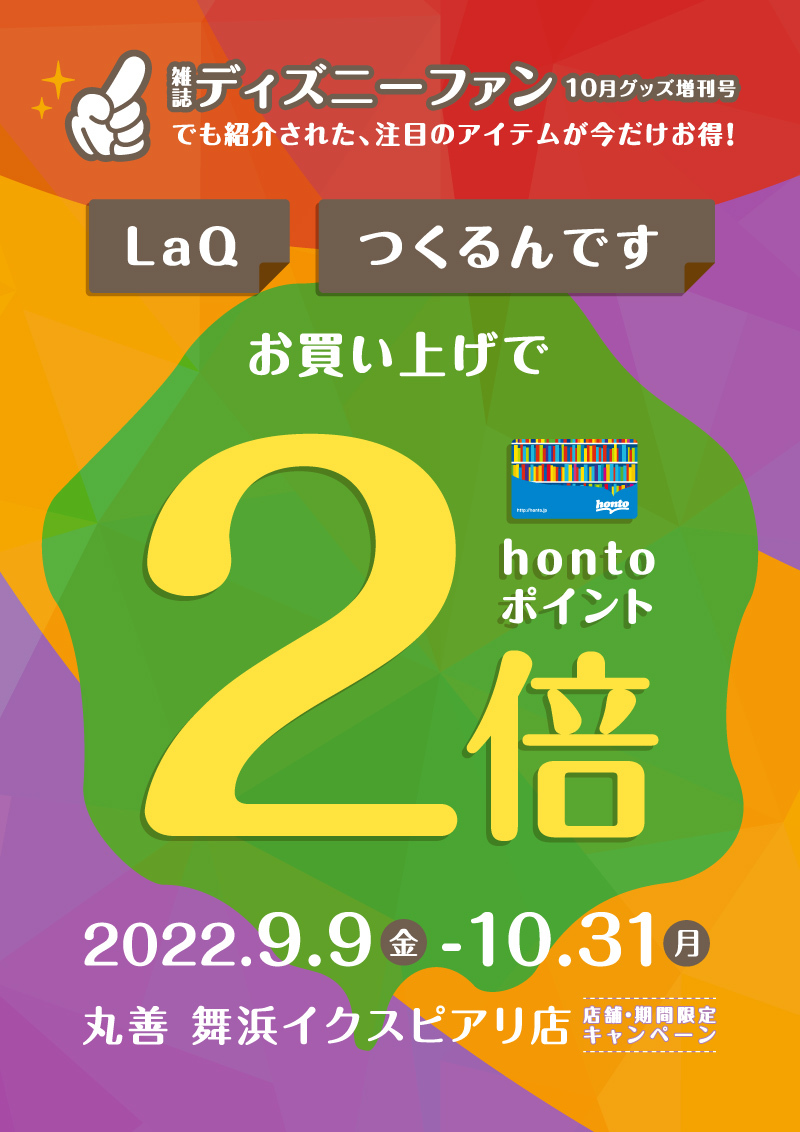 「LaQ」「つくるんです」お買い上げでhontoポイント2倍キャンペーン(舞浜イクスピアリ店)