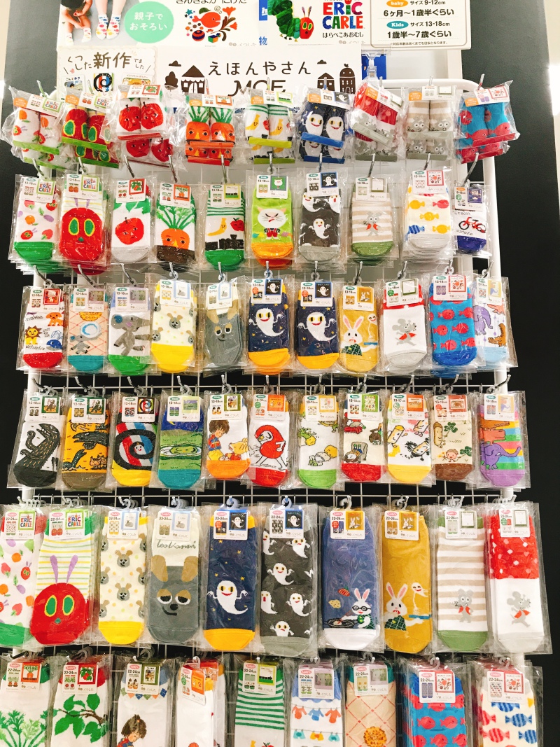 えほんやさんMOE 絵本のくつした入荷いたしました。ふうせんねこ、きんぎょがにげた、ねずみくんのチョッキ、ぞうくんのさんぽ、おばけのてんぷら、ねないこだれだ、など名作絵本のかわいい柄が、くつしたになりました。お子さまにも、自分用にも、はいているだけで楽しさいっぱいです。プレゼントにもおすすめ致します。レジ前展開中、その後も常設展開致します。