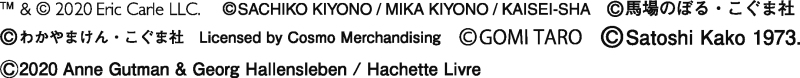 親子お揃いで着れるTシャツや人気の絵本のくつしたや絵本のつみき、ランチグッズやタオル、ふだんの生活にとりいれやすいメモやマスキングテープなどの文具も。お気に入りのキャラクターと一緒に過ごす、ハッピーな毎日を♪