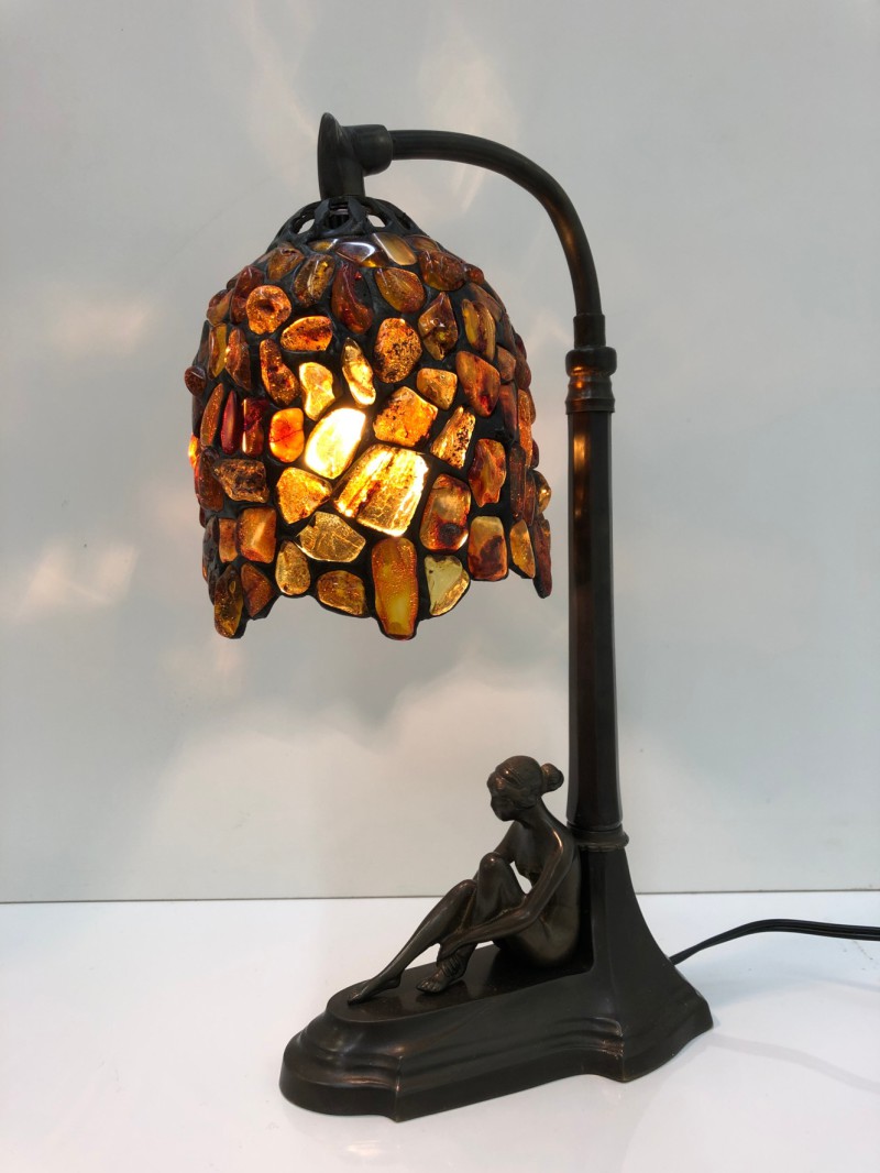 〈琥珀工房〉リトアニア・ポーランドより琥珀原石を輸入し、自社工房にてアクセサリー・インテリア小物などをデザイン・製作しています。写真の作品は琥珀ランプで幻想的な色合いで落ち着いた雰囲気を醸し出す一品になっております。