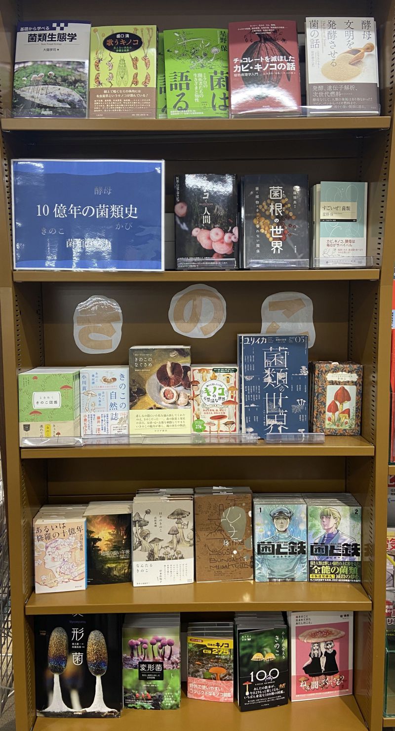 理工書売り場にて、10億年の菌類史~菌類の魅力~フェアを開催中です。菌類の中でもきのこをメインテーマに、菌類史、きのこ図鑑、きのこ文学、エッセイ、コミックなど、読み応えのある本が揃っています。あなたも"菌"断の世界を覗いてみませんか?当店にお立寄りの際にはぜひ一度御覧ください。フェアは10月中旬まで開催予定です。