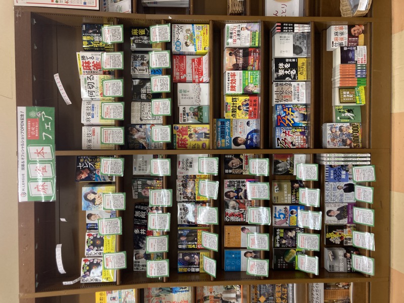 10月3日より開幕するMリーグ。さらに丸善日本橋店とMARUZEN&ジュンク堂書店梅田店にはオフィシャルショップが誕生いたしました。それを記念しまして、当店では麻雀本フェアを開催中です。あの雀士の方が書かれた指南書や健康麻雀に関する書籍など、麻雀好きからこれから麻雀を始めたい人まで幅広い方が楽しめるフェアとなっております。牌型の可愛らしいPOPもあり、ついつい時間も忘れて見てしまいますのでお近くにお越しの際は是非お立ち寄りください。こちらのフェアはエスカレーター横フェア台にて開催中です。