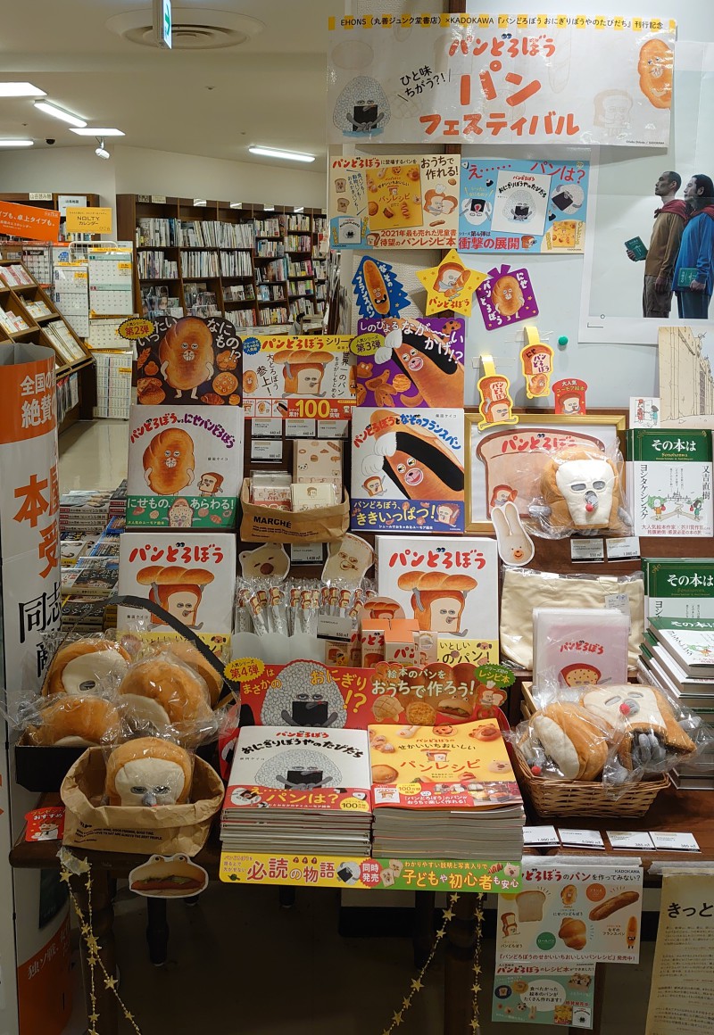 ひと味違う?!『パンどろぼう』パンフェスティバル開催中です。『パンどろぼうおにぎりぼうやのたびだち』刊行記念!せかいいちおいしいレシピ本と「EHONS」オリジナルグッズが勢ぞろい。ほかほか焼きたてのパンどろぼう屋さんです。可愛すぎるパンどろぼうたちが待っているよ。