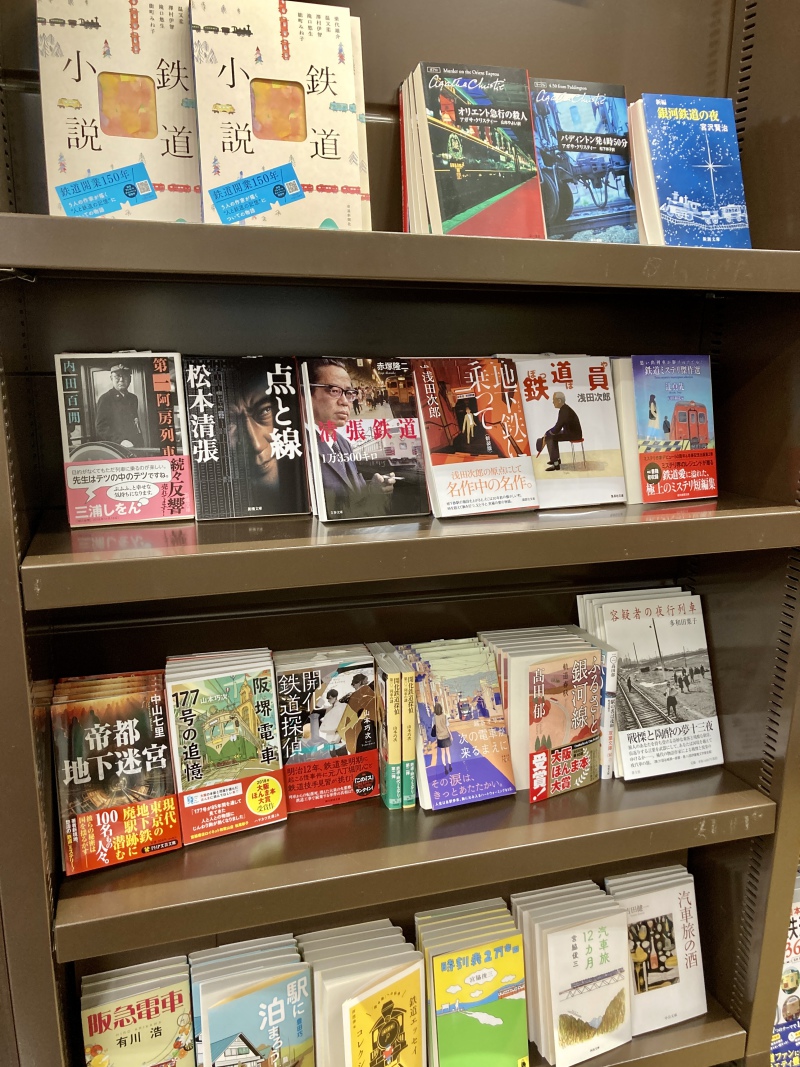 フェアでは他にも、アガサ・クリスティ―の『オリエント急行の殺人』や内田百間の『第一阿房列車』、松本清張さんの『点と線』や浅田次郎さんの『地下鉄(メトロ)に乗って』といった名作から、今年の大阪ほんま本大賞を受賞され、最新刊も発売となったばかりの高田郁さんの『ふるさと銀河線』などもご用意しております。「鉄道を読む」フェアは、B1実用書コーナーにて、11月末頃まで開催予定です。ぜひご覧ください!