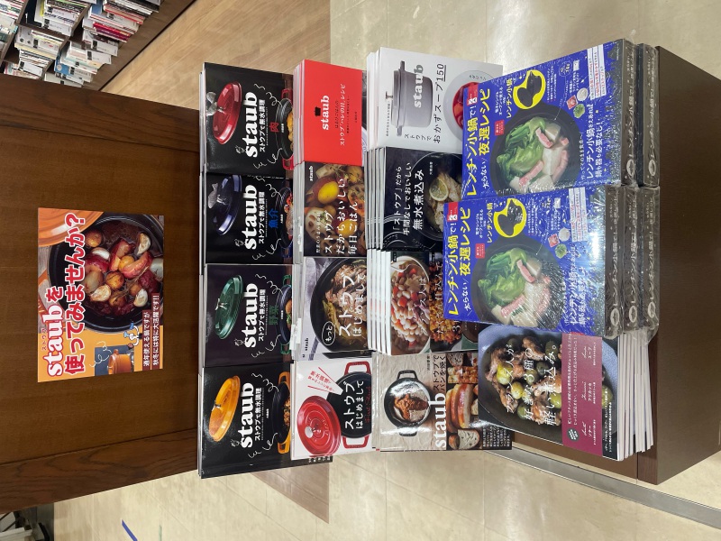 だんだんと気温が下がっていき、こたつとお鍋が恋しくなる季節になってきました…!この時期ピッタリの『ストウブ鍋』をご存知でしょうか?フランスの調理器具メーカーが手掛ける鋳物ホーロー製のお鍋の事です。茹でる・煮る・蒸すといった調理法のほか、ご飯を炊いたり、パンを焼いたりと、さまざまな調理をお楽しみいただけます。形や色、サイズのバリエーションも豊富で、食卓が華やかになる所も人気の1つです。さらにこのお鍋、1年を通してお使いいただけますが、特に秋冬は大活躍をする優れものです!そんな『ストウブ鍋』の魅力やレシピを詰め込んだフェアを実用のエンド台にて、大きく展開しております。この冬はストウブ鍋で、料理をもっと楽しみませんか?