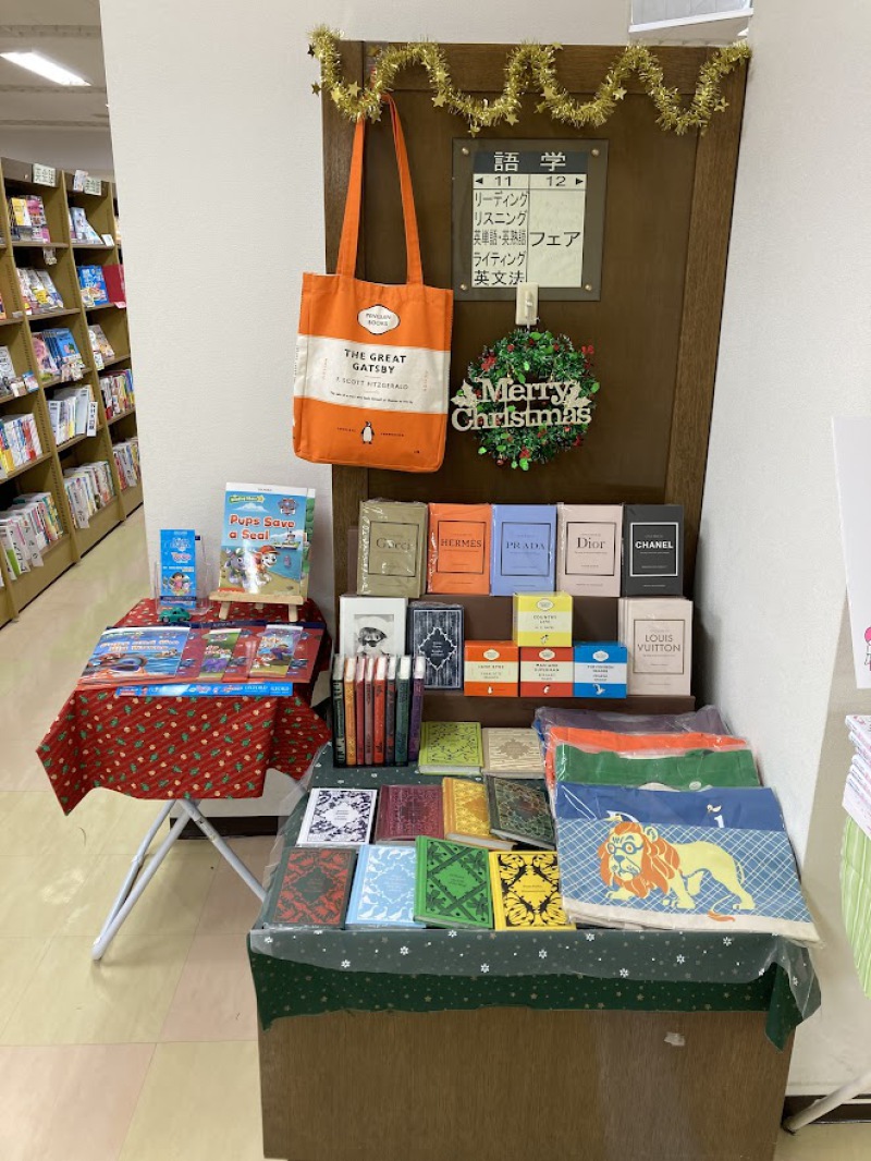 クリスマスの季節がやってきました!今年も絵本やシールなどを集めたミニフェアを開催しております。お子様に人気のペッパピッグやおさるのジョージたちが、クリスマスカラーに身を包んでいて、見ているだけでも楽しい気分になってきます。大人の方向けに、刺繍の入ったような美しい布装丁の洋書やマグカップ、トートバッグなどもご用意しております。大切な方への、そして自分自身へのプレゼントにぜひお気に入りを探しに来てください!