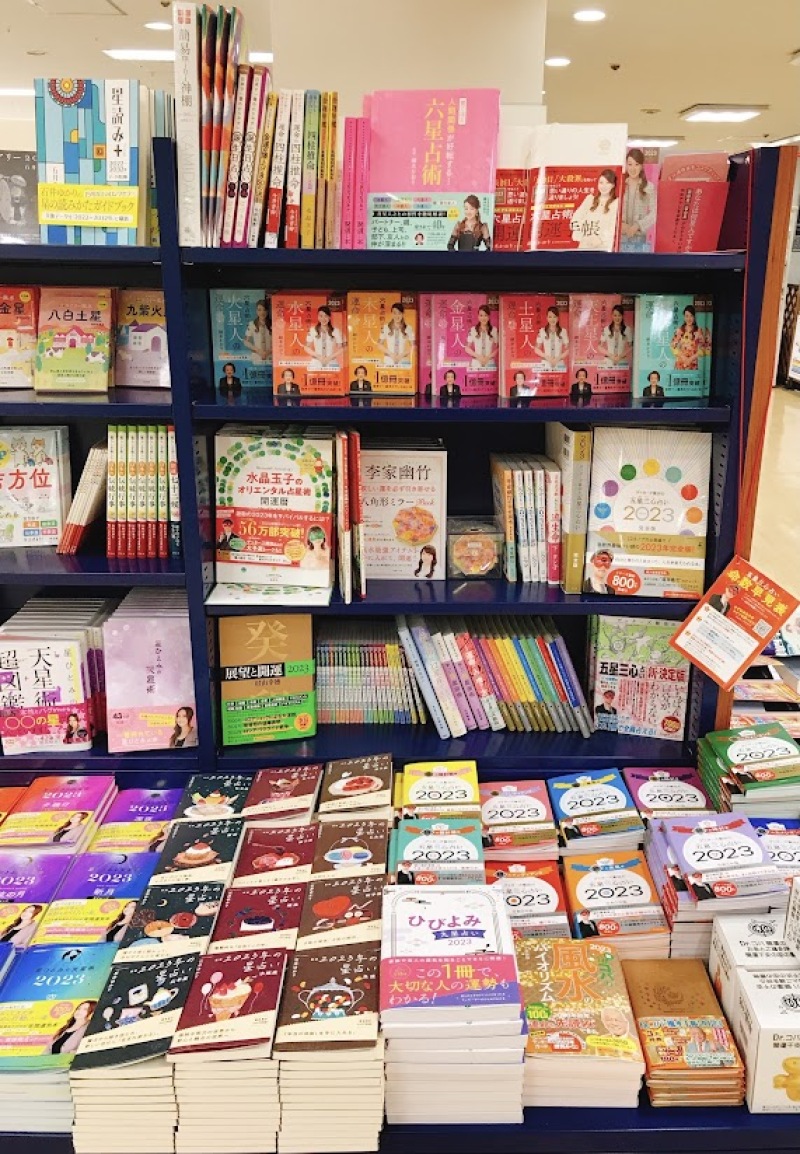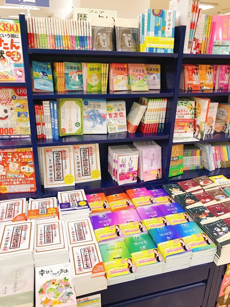 2022年もあと僅か、12月寒い季節がやって参りました。皆様は2022年、今年の運勢はいかがでしたでしょうか。当店では来年、2023年の暦・占いに関する書籍を何点がご用意しております。暦では、神宮館から、神宮館九星暦・神宮宝暦・神宮館高島暦・神宮館運勢暦。占いでは、細木数子さんの娘である細木かおりさんの六星占術の本、石井ゆかりさんの星占い、ゲッターズ飯田さんの五星三心占い、星ひとみさんの天星術に関する本をご用意しております。