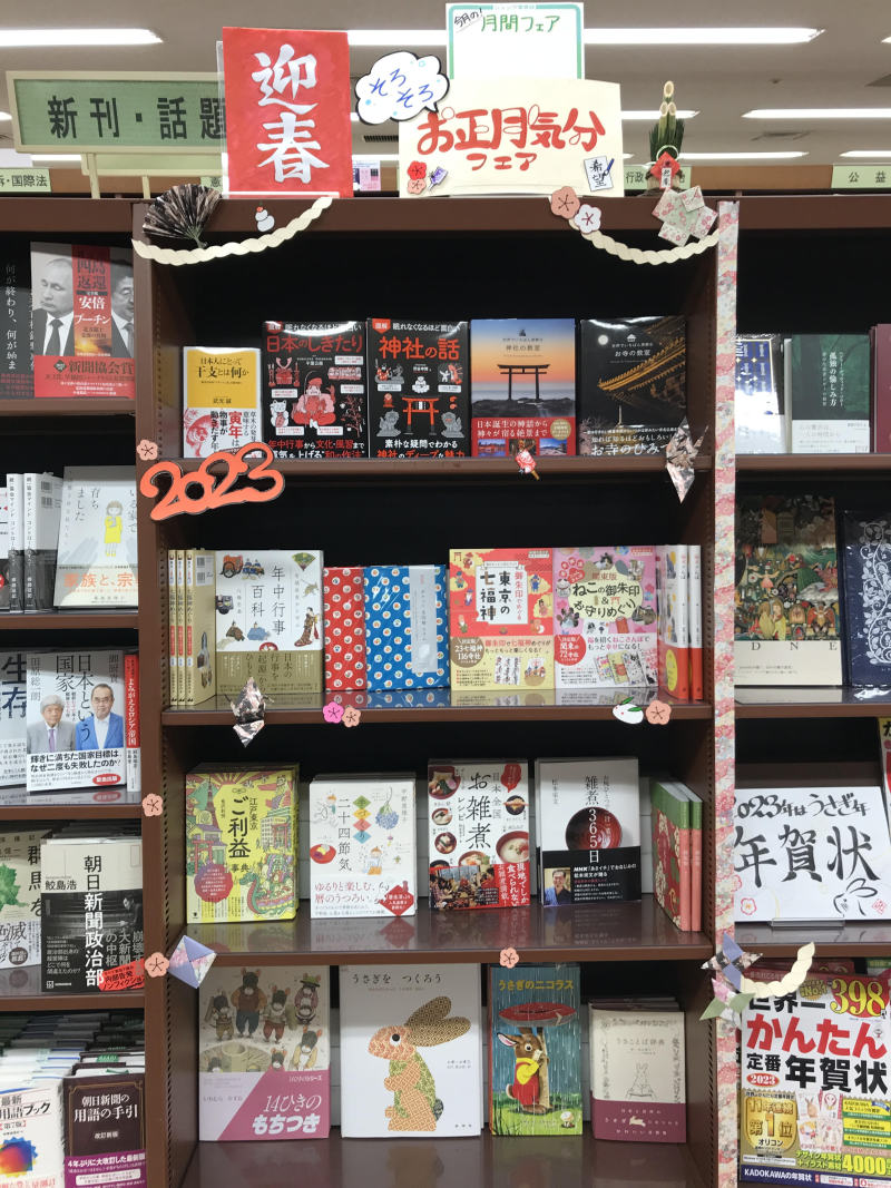 2023年最初の月間フェアのテーマは、ずばり「お正月気分」。干支ってそもそも何なのか、お雑煮を毎日美味しく食べる方法、都内の七福神めぐりガイドや御朱印帳、神社やお寺での作法や決まりごとなど、お正月に知っておくとためになる&お正月気分が盛り上がる書籍を集めました。2023年の干支、うさぎにちなんだ絵本もございます。