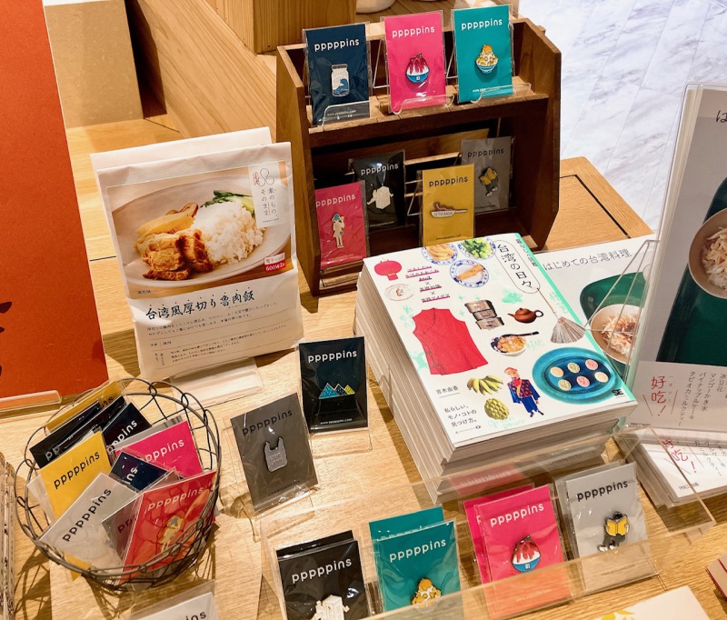 台湾のグルメや建築、カルチャーに触れてみませんか?選書担当者のイチオシは『猫を棄てる 父親について語るとき』(著・村上春樹)で、装・挿絵を担当した台湾在住の漫画家、高妍さんの『緑の歌 収集群風 上・下巻(ビームコミックス)』です。また今回、台湾のピンズブランド「pppppins(ピーーーーンズ)」のピンズも販売しています!カラフルでユニークなモチーフがとても可愛いのでぜひ手にとってみてください!
