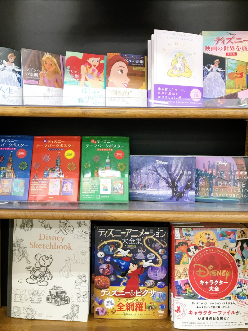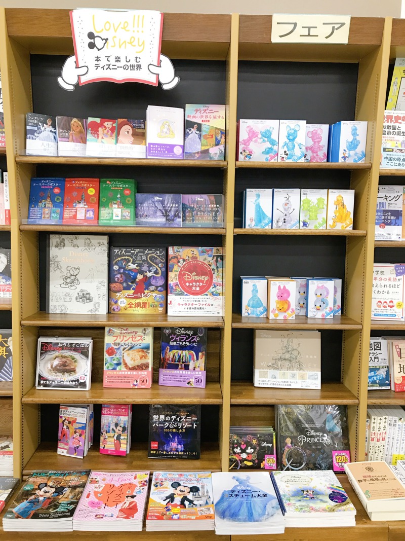 ガイドブックはもちろん、ファンの方におすすめのアニメーションや背景資料集やおうちで楽しめる東京ディズニーランド、シーのレストランレシピブック、塗り絵、スクラッチアートなどもございます。実写映画で使われた衣装を豊富な写真で紹介したコスチューム大全は見ていてとても楽しいです。プリンセスの生き方、魅力に触れる「プリンセスの法則シリーズ」やディズニーリゾートをテーマに描かれたポスターのポストカードブックはプレゼントにもおすすめです!本以外にもミッキーなどの人気キャラクターの立体パズルもございます。エスカレーター上がってすぐ、フェアコーナーにて2月末頃まで開催予定です。