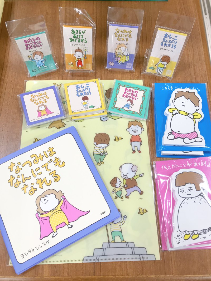 クリアファイルやノート、メモ帳、マスキングテープなど、実用的なグッズはもちろん、アクリルキーホルダーやマグネットもあります!学校や仕事など日常使いに可愛らしいヨシタケグッズはいかがでしょうか。どれも可愛いくて迷ってしまいます!レジ前フェアコーナーにて販売中です。