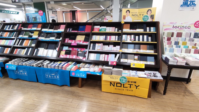 1月始まりの手帳の取り扱いが終わり、4月始まりの手帳の取り扱いが始まっております。高橋書店、日本能率協会、博文館などの手帳を取り扱っております。色違いや、サイズ違い、罫線の違いなど、さまざまな種類の手帳を取り扱っておりますのでお客様の目的に合ったものを見つけてみて下さい。商品は数に限りがございますのでお早めにご来店お願いいたします。メイン通路棚にて展開中です。