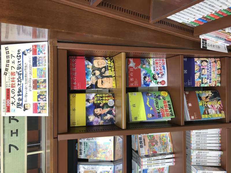 レジ側入り口を入ってすぐ左、通路沿いの列「フェア」の1番奥の棚にて開催中です。