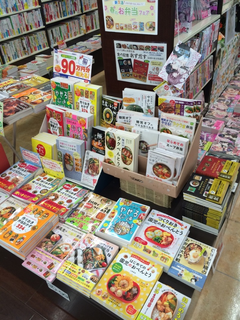 みんなが大好きお弁当。お弁当の本フェアを開催中です。家族のため、あるいは自分用に、健康やダイエットにも気を使いたい方向け、忙しい方向けに作り置きを駆使して短時間でできるものなど、様々な種類の本からお選びいただけます。メニューに迷うことなく、楽しく簡単に、おいしいお弁当を毎日作り続けられますようにぜひ。実用書コーナーにて。