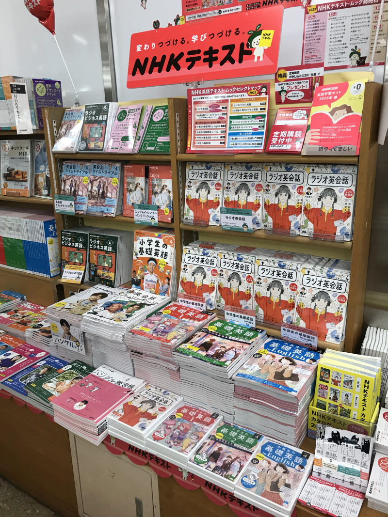 2023年度のNHKテキスト4月号が入荷してきました。なにか新しいことに挑戦したいと思っていらっしゃる方、始めるにはぴったりの季節です。目指しているレベルに合わせて、たくさんの講座の中から選択できるので、長く続けていけそうですね。新講座の開設や講師の変更などがございますので、お早めのご確認をお願い致します。当店2階雑誌売場にて展開中です。