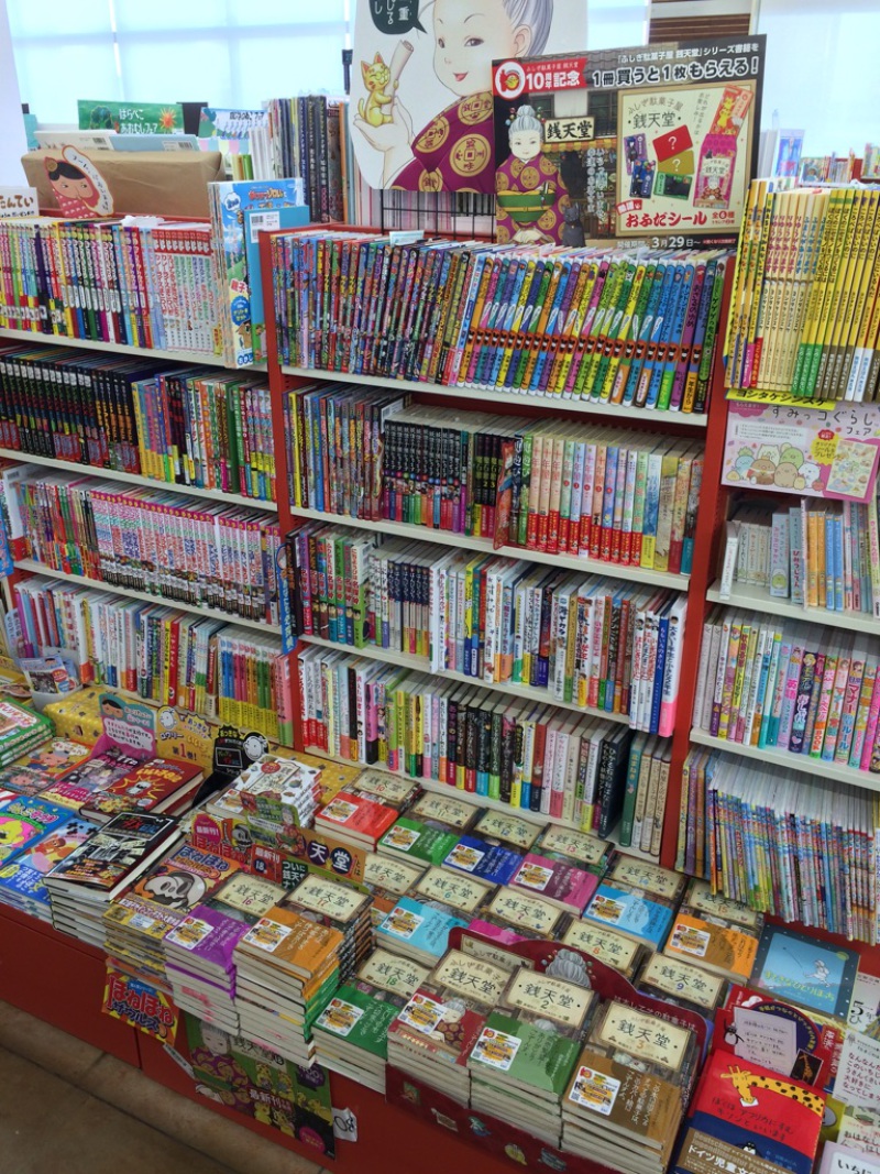 小・中学生を中心に大人気のシリーズ「ふしぎ駄菓子屋 銭天堂」が、2023年で刊行10周年を迎えました。4月上旬には、19巻目となる新刊も発売予定です。ただ今、10周年記念企画といたしまして、購入者特典の店頭配布(なくなり次第終了)、読者応募のプレゼントキャンペーンなどを実施中。児童書コーナーに全巻取り揃えまして、皆様のご来店をお待ちしております。