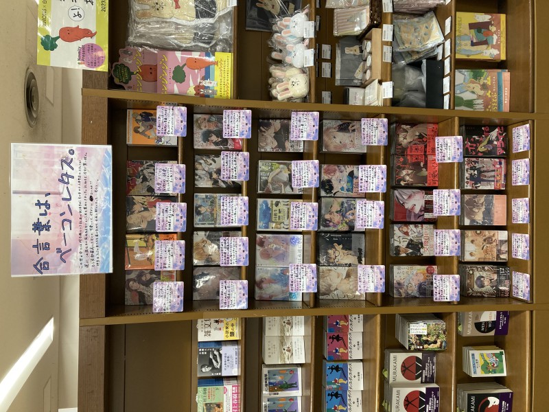 不定期で開催している、上本町店オリジナルフェア。今回は『他の店舗とは被らなさそうな斬新なフェアをしてみよう』をテーマに作られたのが、BLコミックを集めた“合言葉はベーコンレタス”フェアです。近年、SNSなどで人気が急上昇している“BL(ボーイズラブ)”ジャンル。コミックやノベルスに留まらず、ドラマCDやアニメ化、劇場版からポップアップストアなど勢いが最もあるジャンルかもしれません…!そこで上本町店の有志たちがぜひとも読んでいただきたい、しかも表紙はお洒落で手に取りやすい!というオススメBLコミックスを挙げていき、フェア担当が悩み唸りながら選書したアツいフェアとなっております。さらにこのフェアだけに作られたパネルや愛あふれるコメントが綴られたポップなど見どころも満載です。こちらのフェアは4月末までの展開となっており、売り切りの商品も多数ですので、この機会にぜひともお立ち寄りくださいませ!