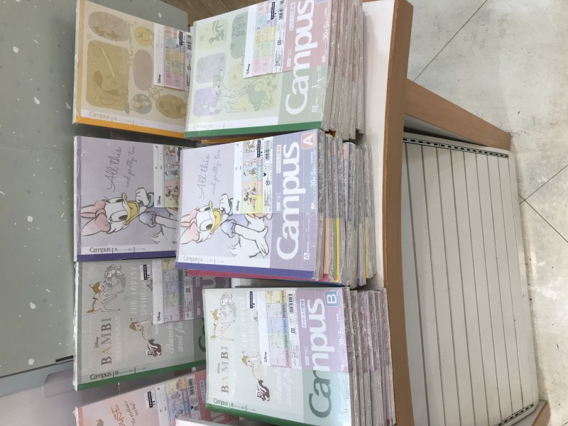 トレンドカラーのベイクドカラーです。スヌーピー、ディズニー柄も新商品が入荷しております。授業がはかどり楽しくなるノートが満載です。ぜひ、ご来店くださいませ。2023年2月より閉店時間が20:00に変更になりました。ご来店の際はお気をつけください。