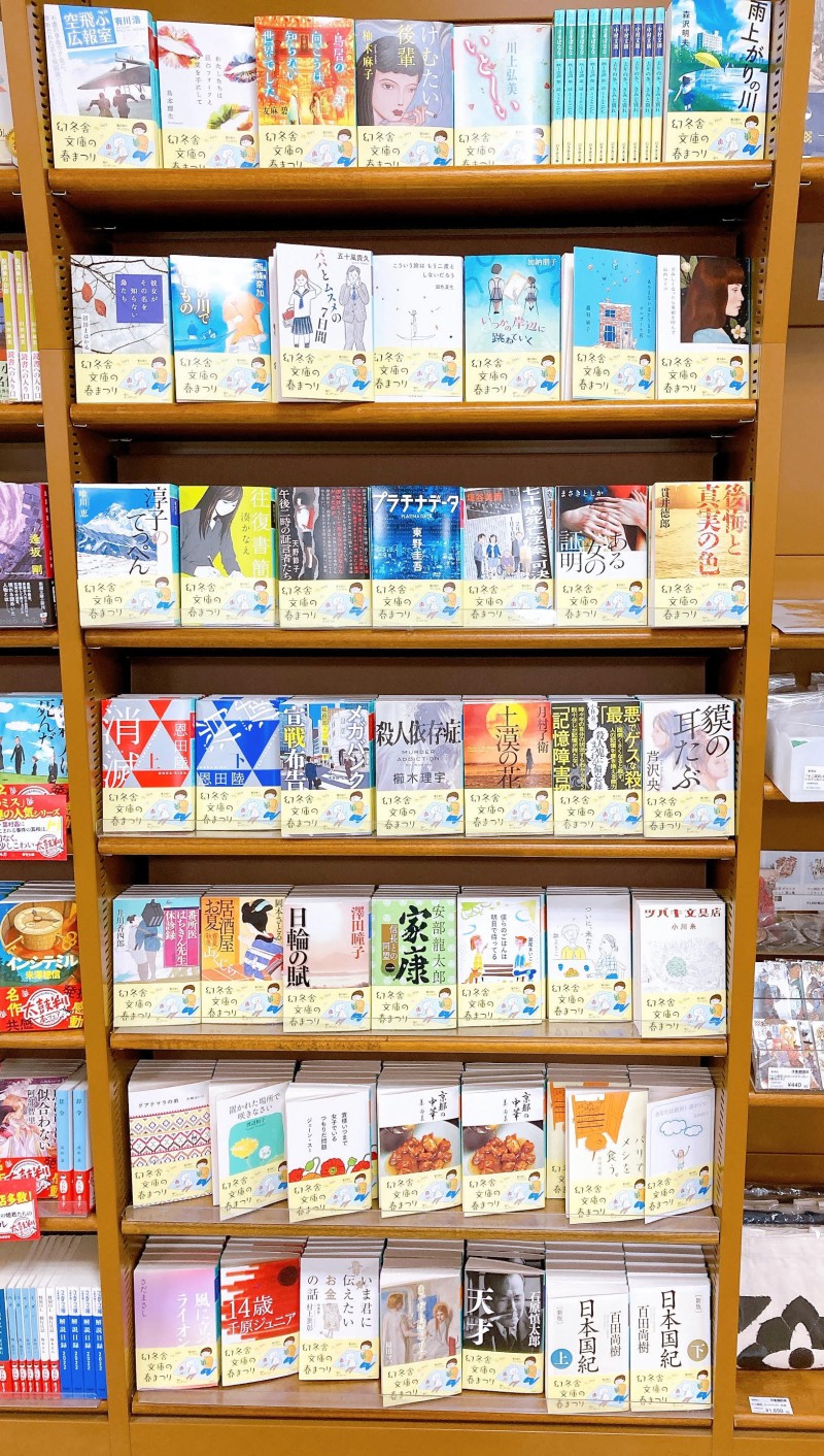 幻冬舎文庫2023春フェア始まります!毎年恒例「幻冬舎文庫の春まつり」の季節がやってきました!益田ミリさん書き下ろしキャラクター「書店員のブンコさん」と「猫のホンダニャン」の帯が目印です。東野圭吾『プラチナデータ』、安部龍太郎『家康1』、担当オススメ『京都の中華』などなど、たくさん読みたくなっちゃうフェアです。ぜひお立ち寄りくださいませ!