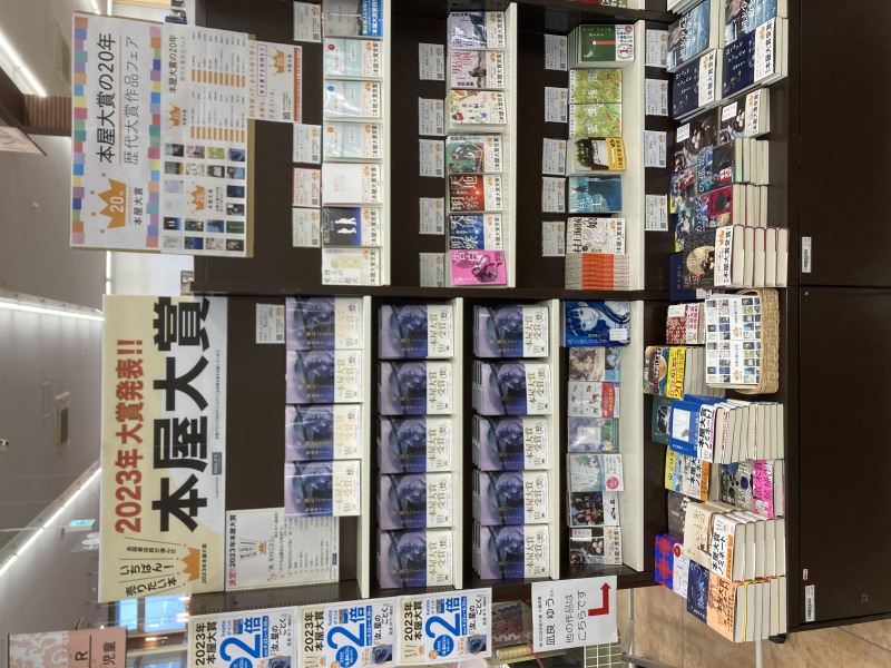 2023年本屋大賞が『汝、星のごとく』に決定しました。今回のノミネート作品と受賞作家、凪良ゆうさんの著作を集めたフェアを開催中。さらに本屋大賞20回を記念して過去の受賞作品が勢揃いの「本屋大賞の20年」フェアも開催中。ここ20年の年別の小説代表作フェアといってもいいかもしれません。色褪せない名作ばかりです。フェア記念小冊子も配布中。