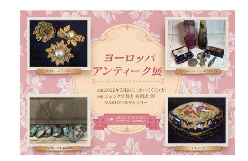 ジュエリー・ガラス工芸品・陶磁器や銀器、小物類やレースなどの古き良き時代のヨーロッパアンティークの数々を展示販売いたします。皆様のご来場お待ちしております。